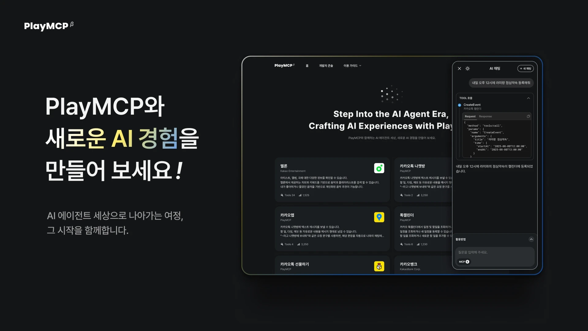 카카오는 지난 7월 국내 최초로 플레이MCP를 베타 오픈했습니다. MCP는 AI 모델이 외부 데이터나 도구와 소통하는 방식을 표준화한 통신 규약으로, 2024년 11월 앤트로픽(Anthropic)이 오픈소스로 공개했습니다.